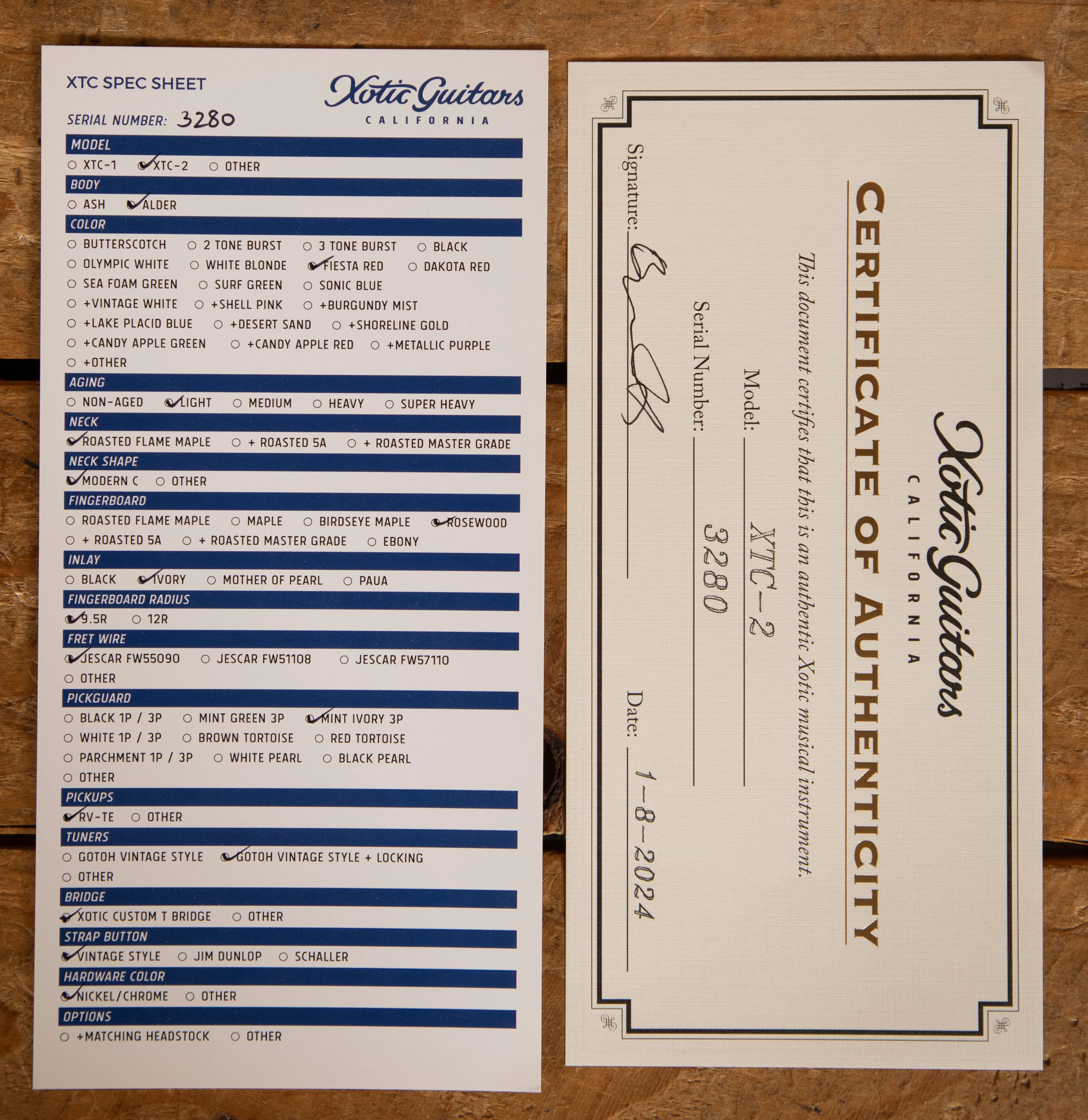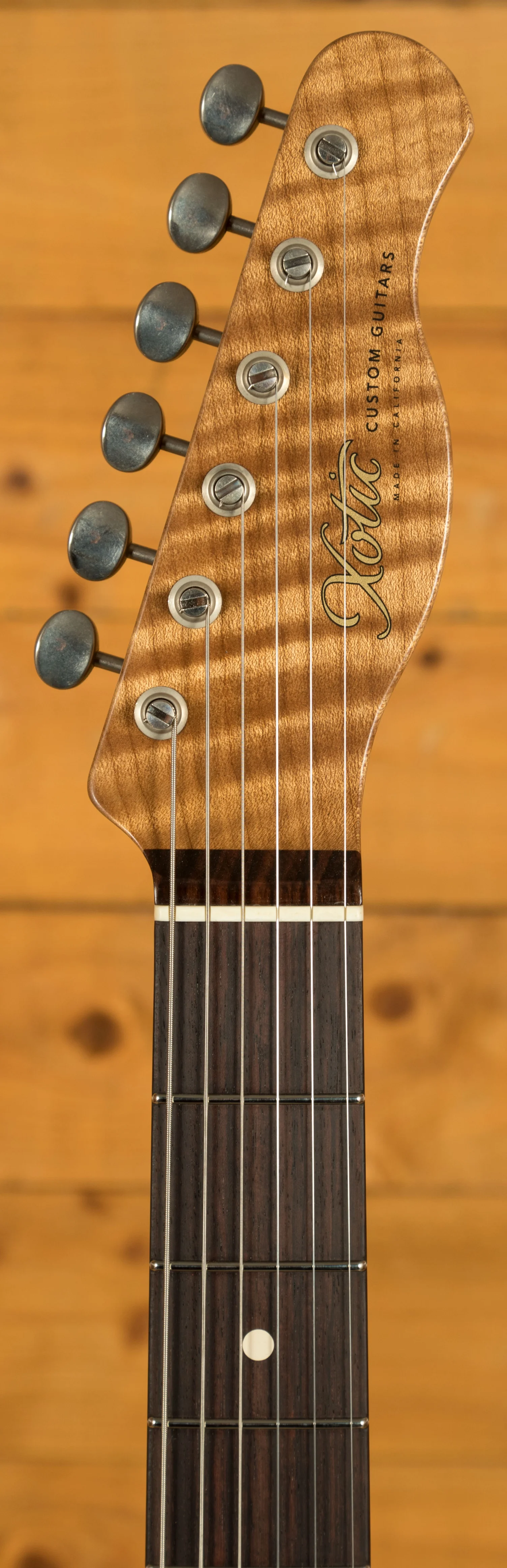 The necks on these are something really special, featuring a Roasted Flame Maple, a Modern C Shape neck profile, a Rosewood fingerboard, 9.5" radius and Jescar FW55090 frets it feels comfortable and familiar. Gotoh vintage style locking tuners and a custom Xotic bridge deliver incredible tuning stability and intonation.