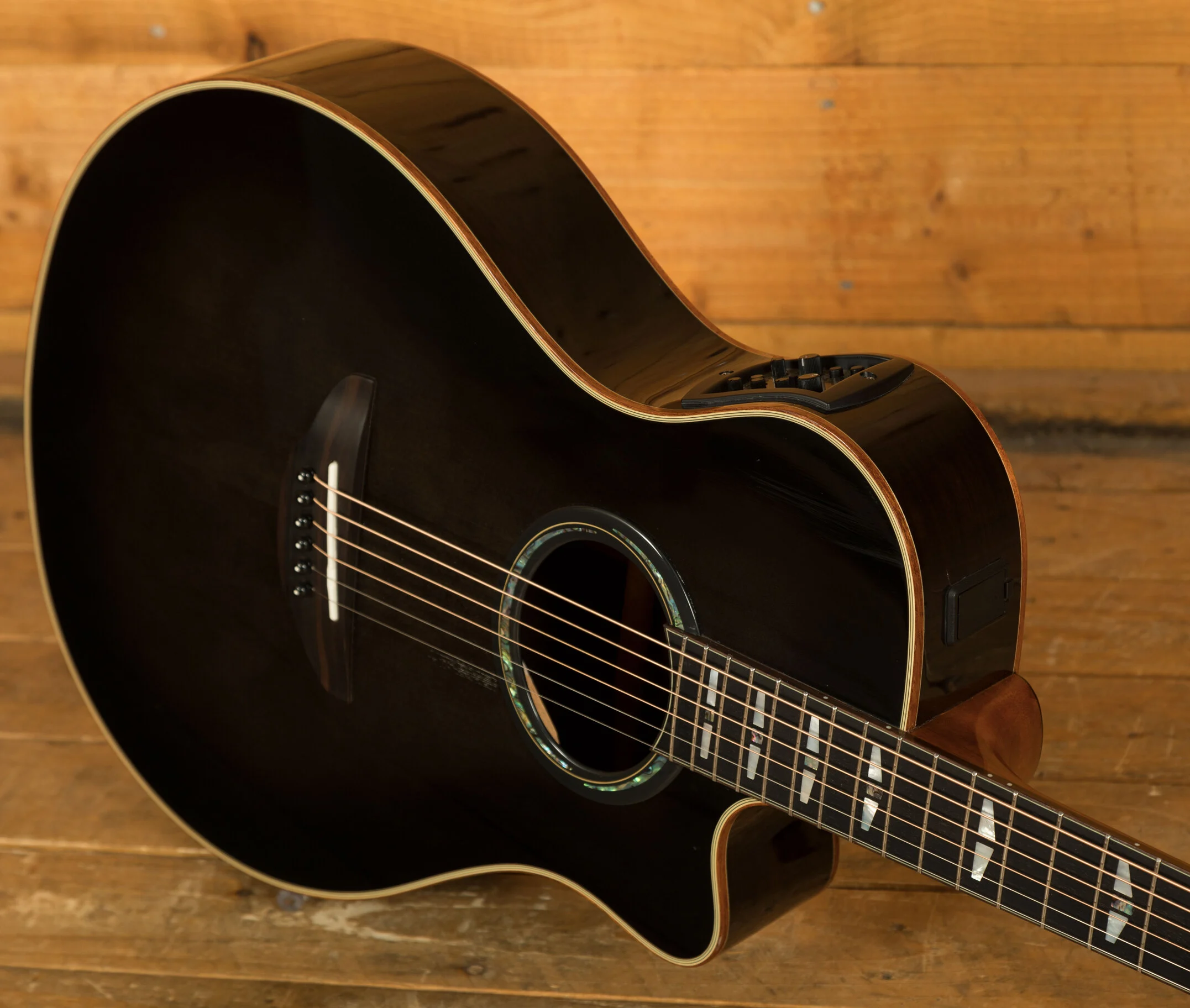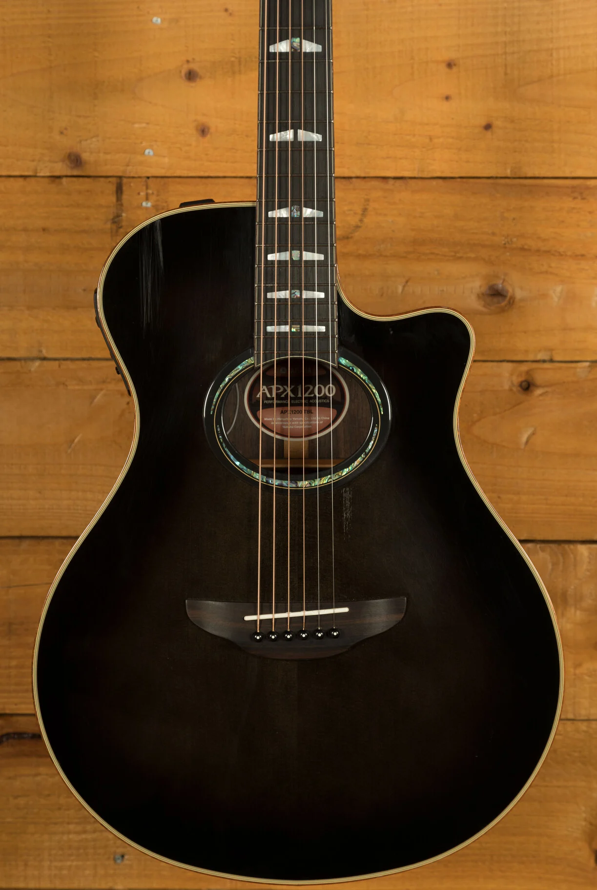 The Yamaha APX1200 is a thin body, cutaway electro acoustic. With a Solid Spruce top and Solid Rosewood back and sides, it offers a crisp and cutting natural tone. It is beautifully balanced and articulate, perfect for fingerstyle and bold chord strumming.